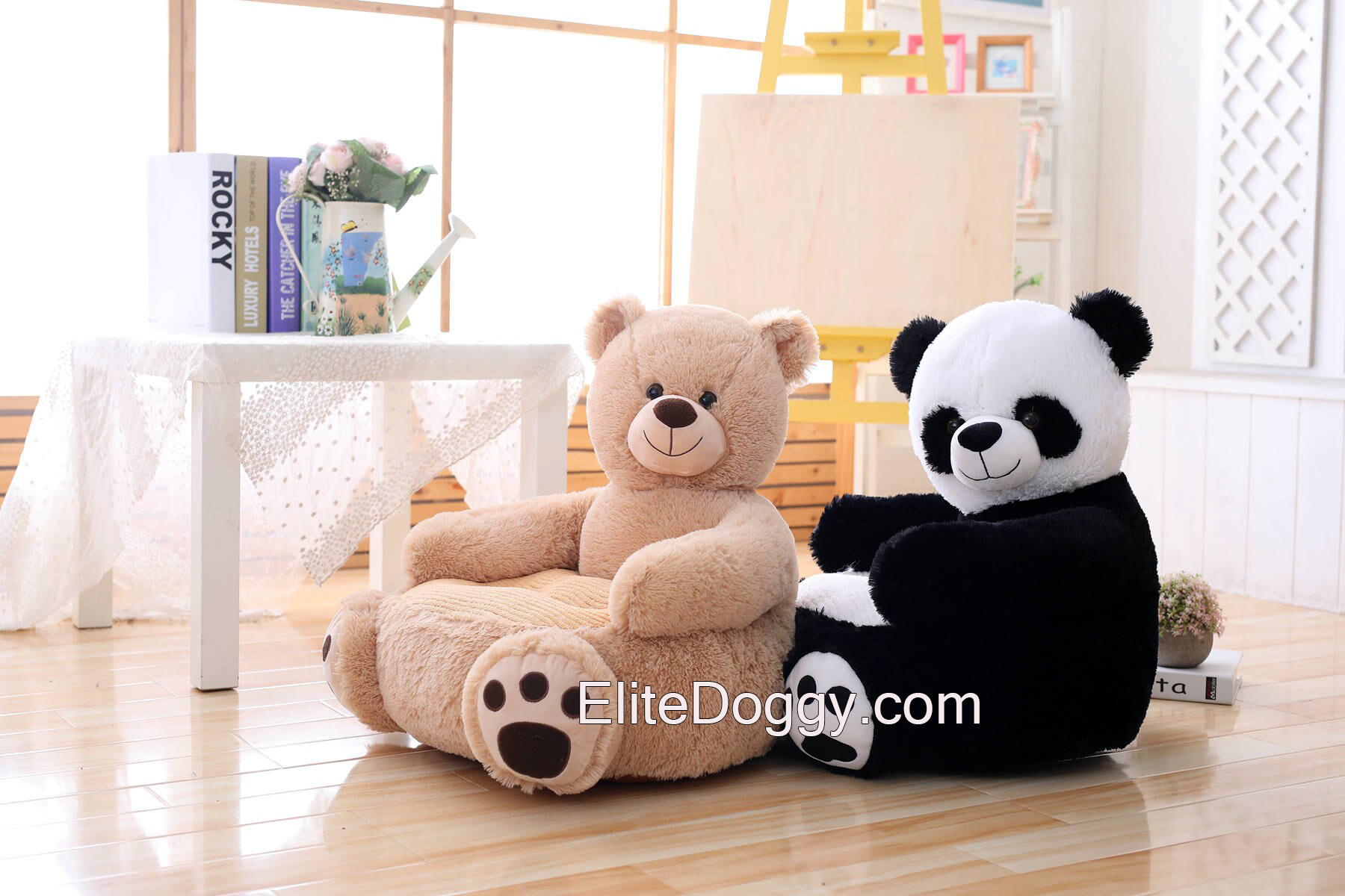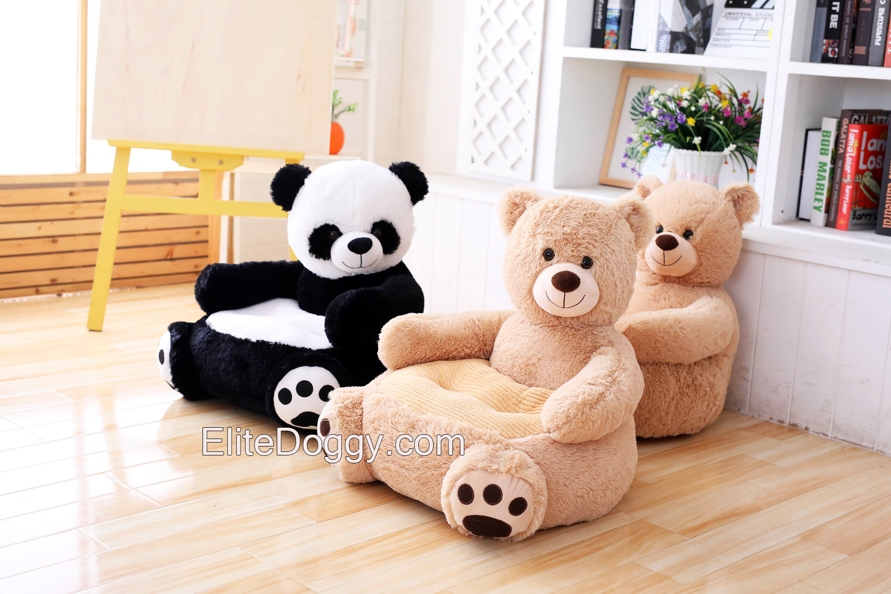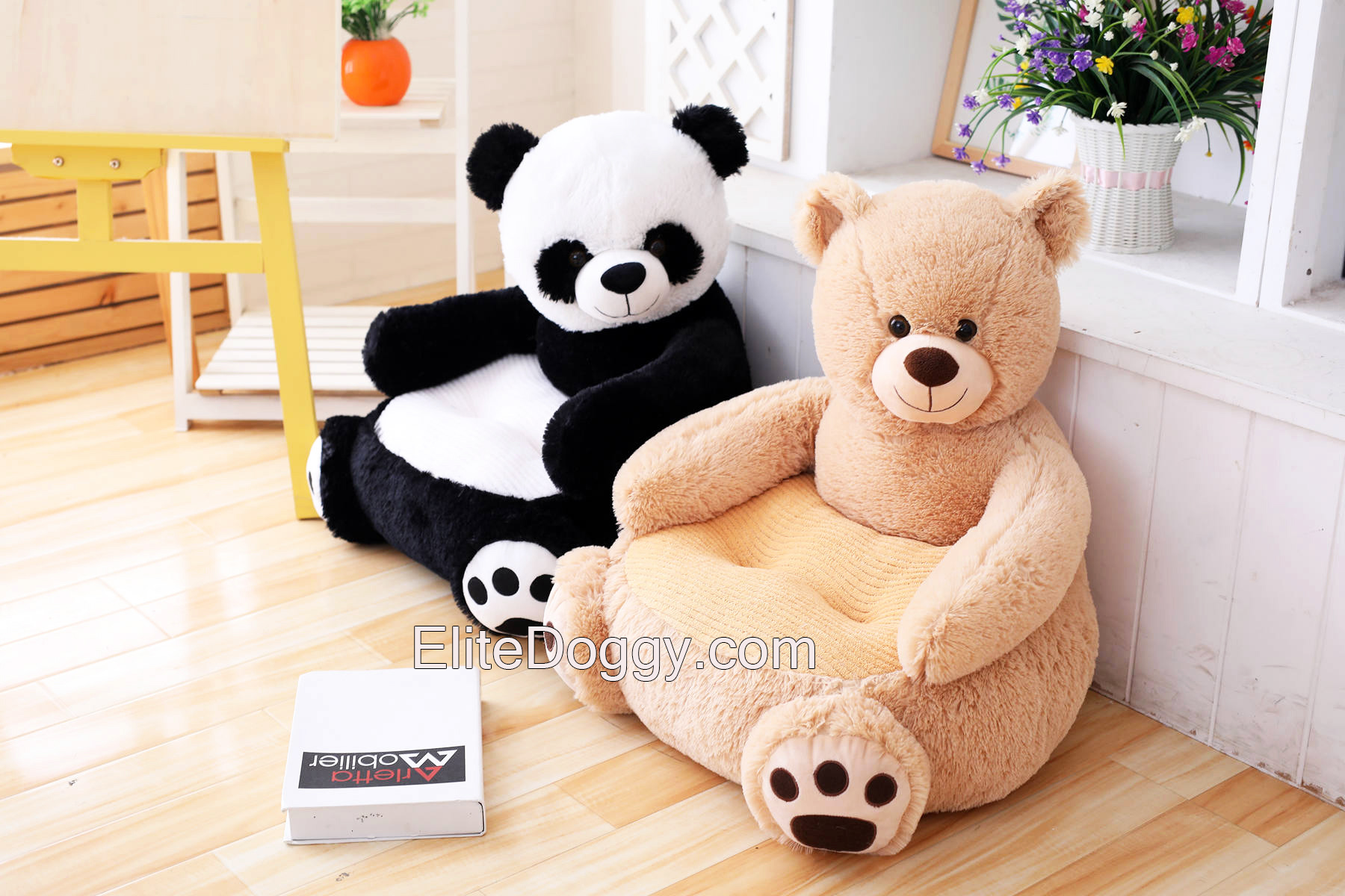 - В ассортименте 4 вида цвета: черно-белая панда, бежевый мишка, коричневый мишка и бежевая собачка.