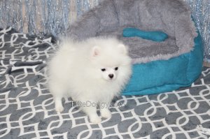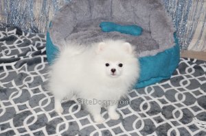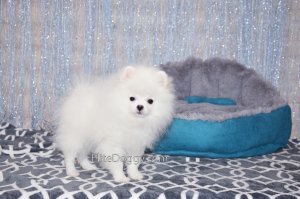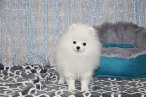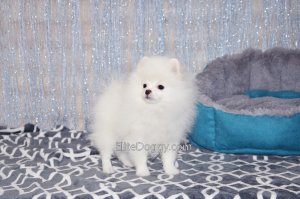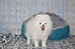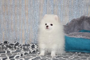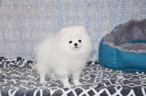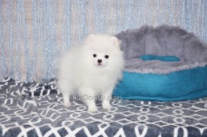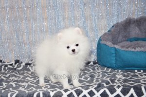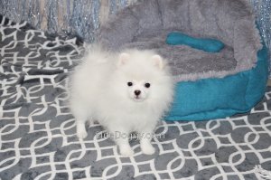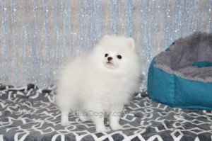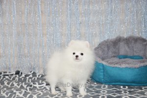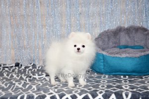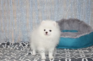 В продаже мини девочка померанского шпица белого окраса, в красивом померанском типе, компактно и пропорционально сложена, квадратный корпус, широкий крепкий костяк. Возраст щенка 5 месяца, предполагаемый взрослый вес 2,5 кг, рост в холке 22-23 см. Сейчас малышка в начальной стадии юниорской линьки (особенность данной породы).